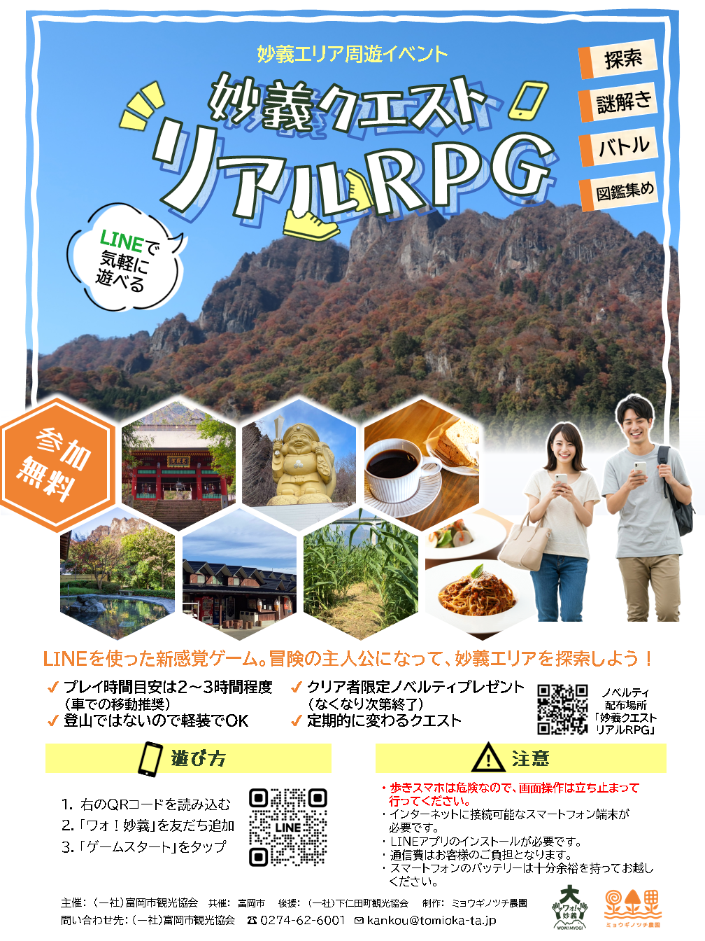 LINEアプリを使って気軽に楽しめる。冒険の主人公になって、妙義エリアを探索しよう!
