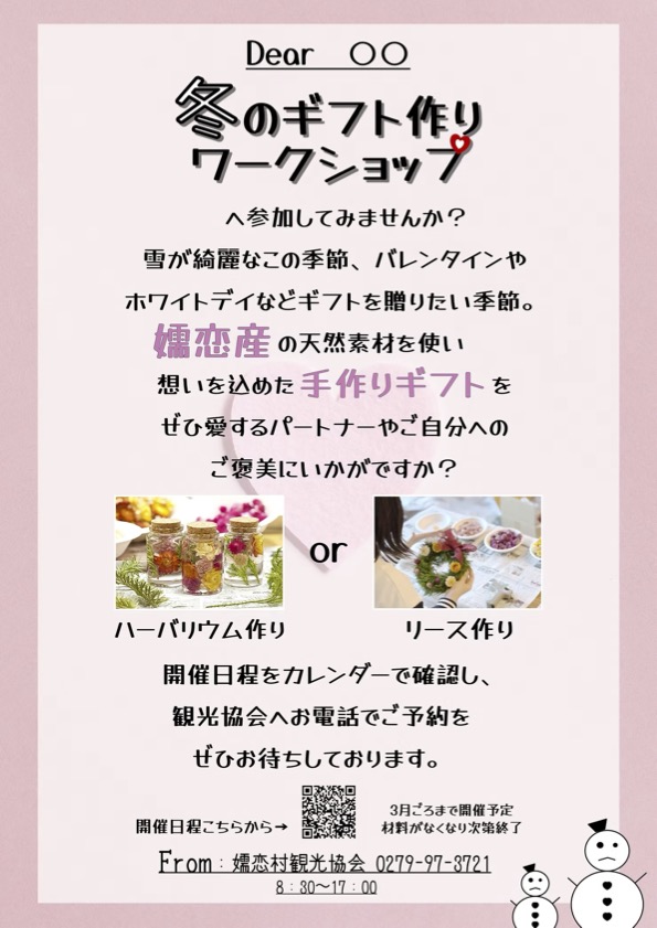 「冬のギフト作りワークショップ」開催!2026年1月~3月