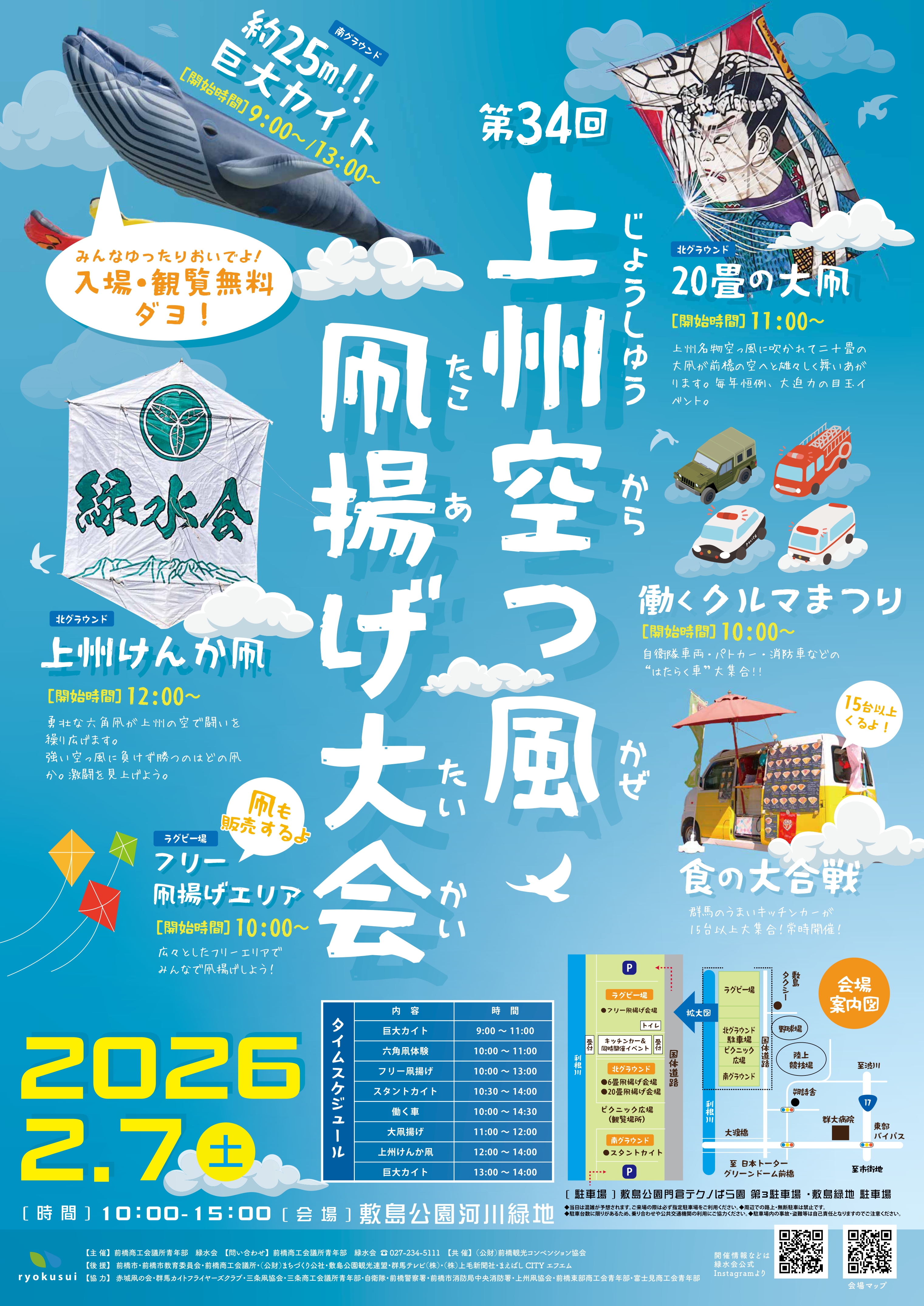 第34回上州空っ風凧揚げ大会を開催します。上州名物空っ風に吹
