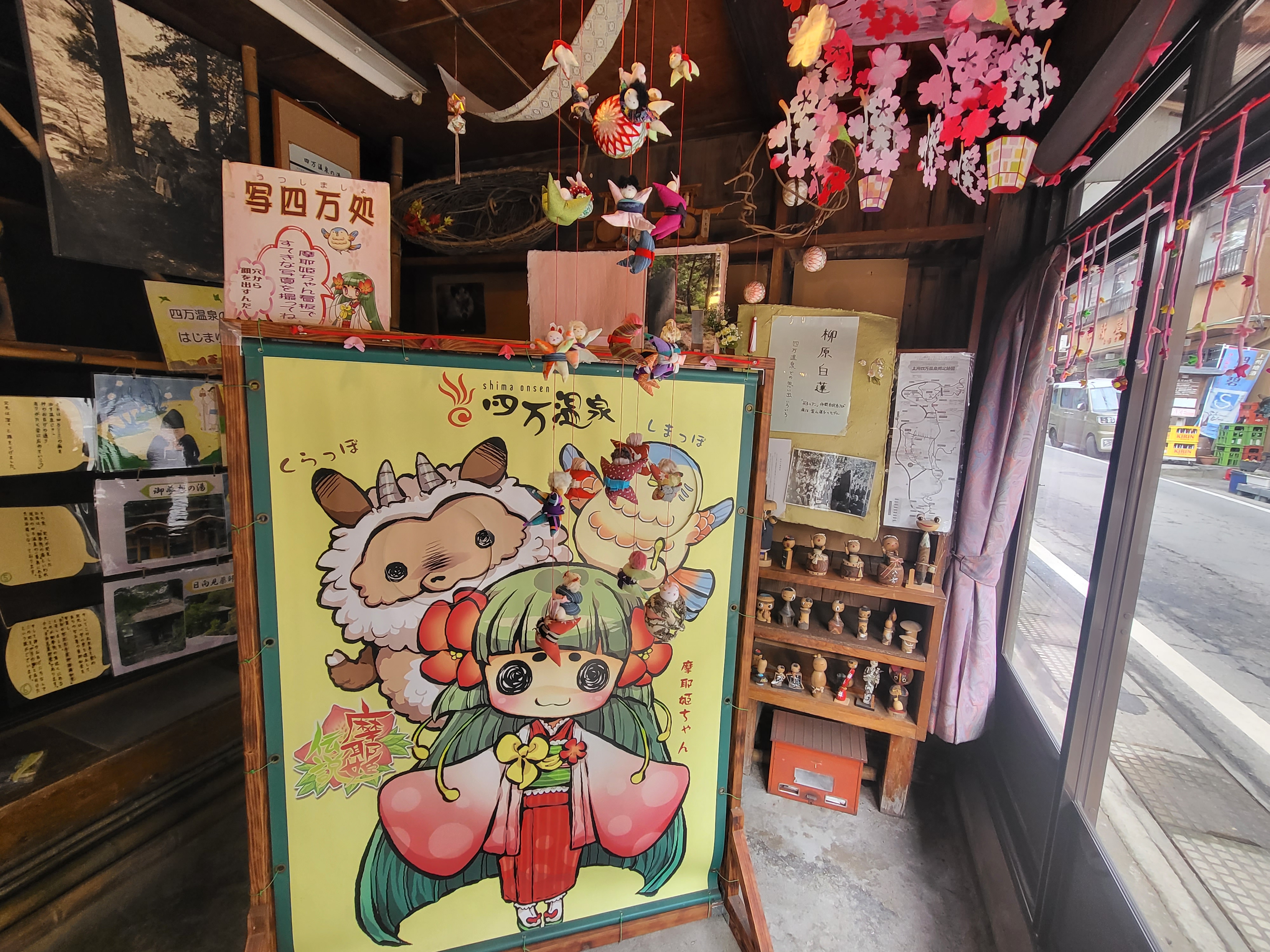 四万温泉内の旅館や商店などにお雛様や手づくりのつるし雛が飾られています。