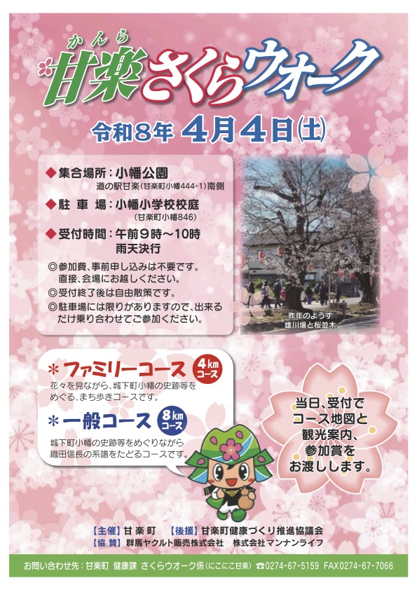 4月4日(土)甘楽さくらウオーク開催のお知らせ