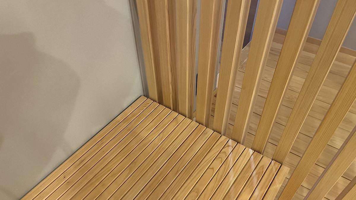 <待合室の椅子です。ヒノキが使われているそう>