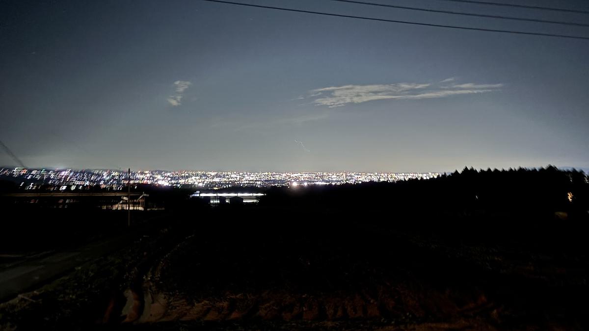 <ハウスの外から撮影した夜景>