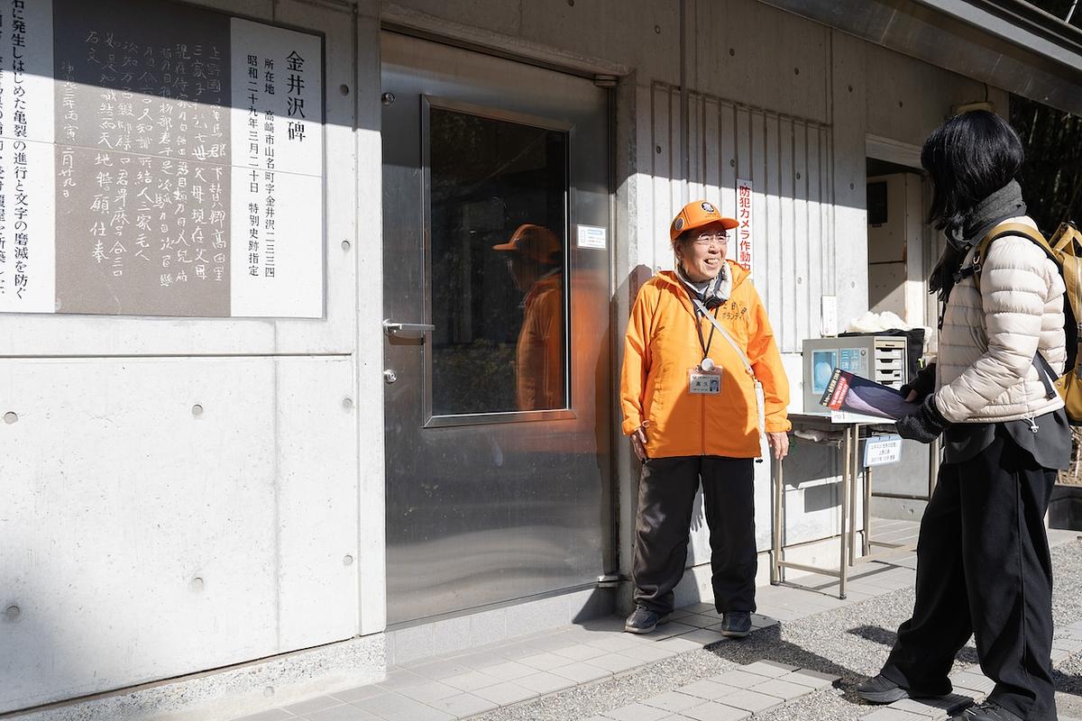 静寂に包まれた「金井沢碑」ボランティアガイドさんとの出会い